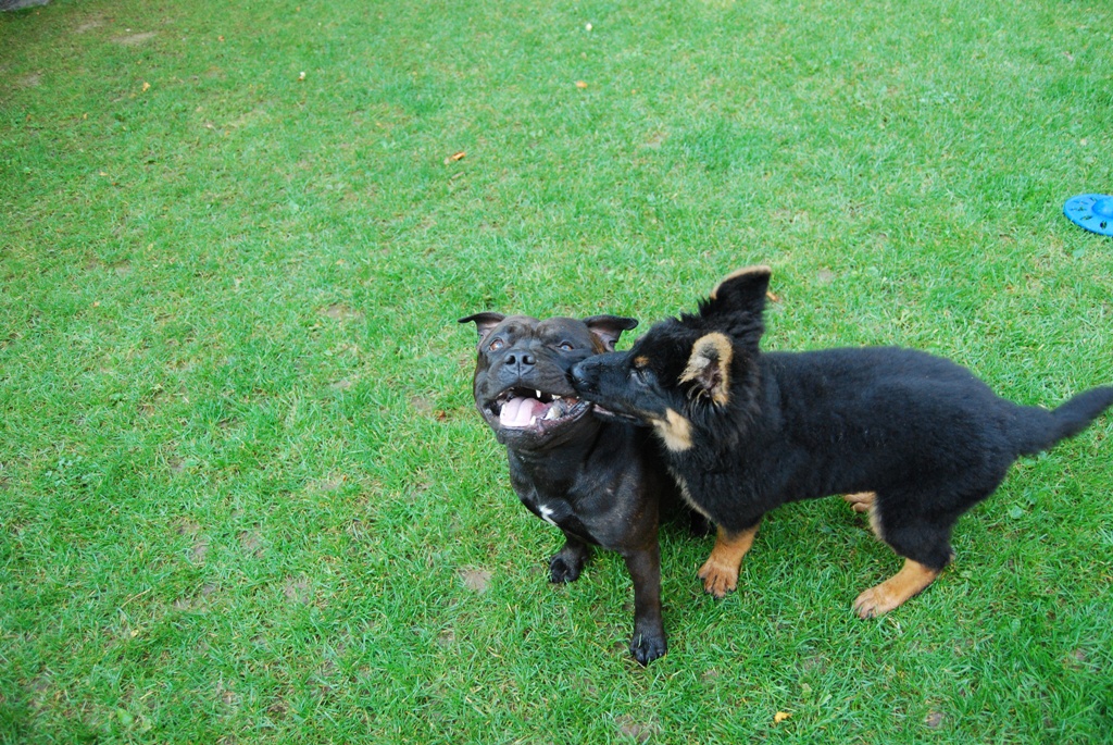 Max je stafordšírský bullteriér. Jsme opravdu velcí kamarádi. Když si mě panička poprvé přivezla domů, byl to Maxík, kdo se na mě přišel poprvé podívat.